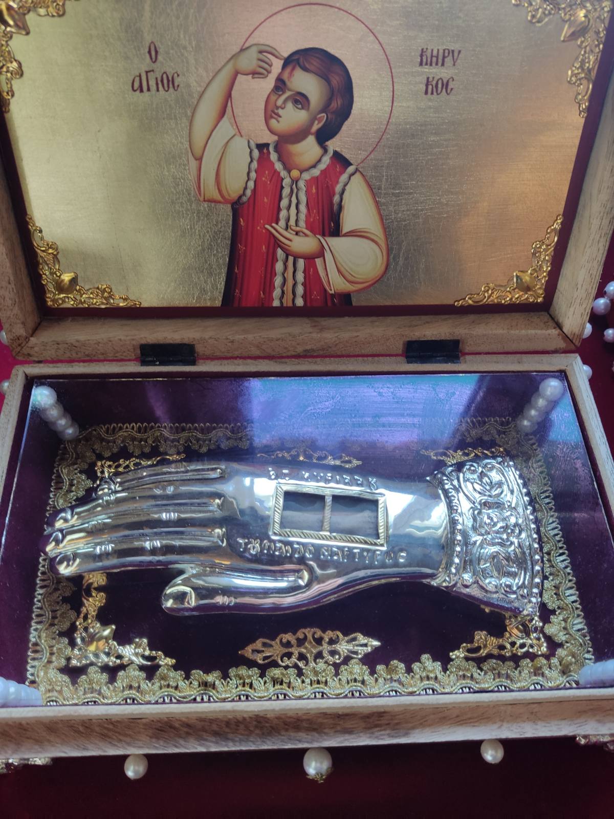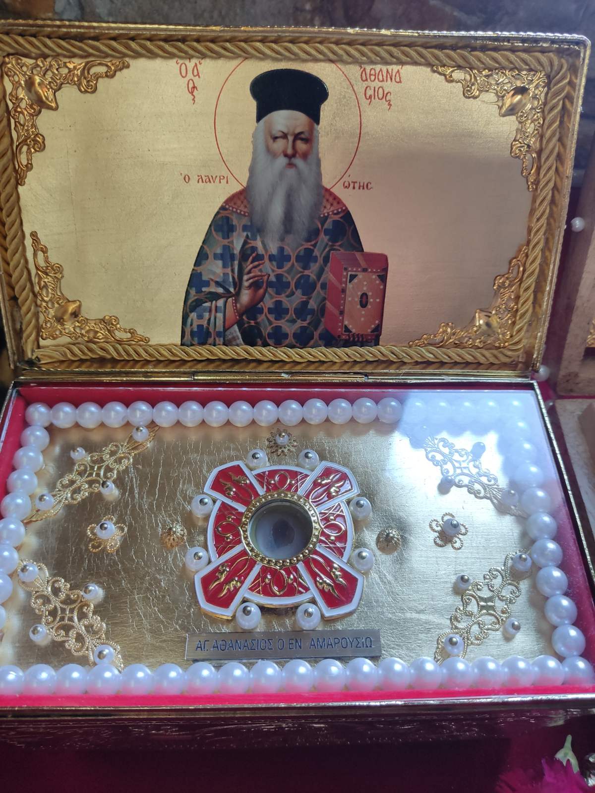 Κλήρος και λαός είχαν την ευκαιρία να προσκυνήσουν Ιερά Λείψανα του νεοφανούς Αγίου Αθανασίου Χαμακιώτη, του Αγίου Κηρύκου, του Αγίου Νικηφόρου του Λεπρού, του Αγίου Ιακώβου του Αδελφοθέου, του Αγίου Δημητρίου και του Αγίου Εφράιμ του μεγαλομάρτυρος. Τα Ιερά Λείψανα εκόμισε ο Ιερολογιώτατος Διάκονος π. Αστέριος Αποστόλου και θησαυρίζονται στον Ιερό Ναό Μελίτωνος, Αστερίου και Μελετίου, στην Αμάρυνθο Ευβοίας. Επίσης, τέθηκαν σε προσκύνηση, Σταύρος ευλογίας και μέρος του αίματος του Αγίου Πορφυρίου, κομμάτι από την κουβέρτα του Αγίου Παϊσίου και Σταυρός από άμφια του Αγίου Ιακώβου.