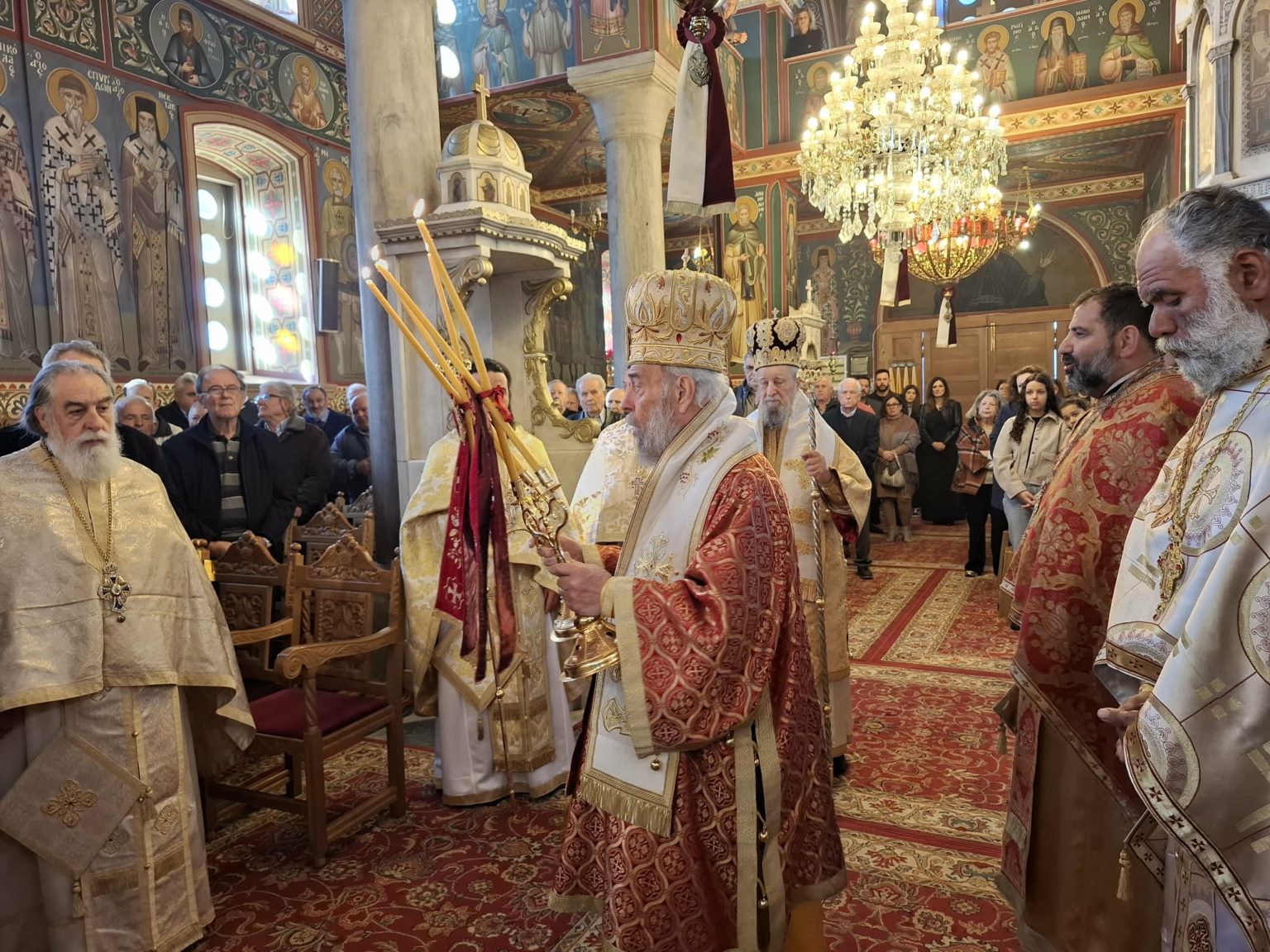 Κατά τη διάρκεια του κοινωνικού, εκήρυξε ο προεξάρχων Αρχιερεύς, ο οποίος αναφέρθηκε στις εορτές και τελετές της εβδομάδος, που παρέχουν μεγάλα και δυνατά διδάγματα στους πιστούς. Αρχικά, υπενθύμισε στο εκκλησίασμα την ευαγγελική περικοπή της περασμένης Κυριακής του Τελώνου και του Φαρισαίου, η οποία μας διδάσκει ότι η υπερηφάνεια ταπεινώνει τον άνθρωπο, ενώ η ταπείνωση έρχεται να μας σώσει. Στη συνέχεια, τόνισε το ασκητικό πνεύμα, το βίο και τις αρετές του Οσίου Λουκά του εν τω Στειρίω. Επίσης, ο Σεβασμιώτατος ανέλυσε το πνευματικό περιεχόμενο της εορτής της Υπαπαντής, το οποίο αποτυπώνεται στην πειθαρχία του Ιησού και της Θεοτόκου στο μωσαϊκό νόμο, κατά τον οποίο το αρσενικό βρέφος αφιερωνόταν στο Θεό, με την προσέλευση στο Ναό και τον εκκλησιασμό του. Επιπλέον, η εορτή αυτή εκφράζει την ταπείνωση του Κυρίου, ο οποίος, όπως χαρακτηριστικά υπογράμμισε, “εταπείνωσε Εαυτόν, μορφήν δούλου λαβών” και έγινε όμοιος με μας σε όλα, εκτός της αμαρτίας. Υπερθεματιζόντας, δε, ανέφερε ότι η εορτή της Υπαπαντής μας καλεί να γίνουμε κι εμείς θεοδόχοι, όπως και ο Άγιος Συμεών ο Θεοδόχος, που υποδέχτηκε το θείο βρέφος εναγκαλιζόμενος αυτό. Και θεοδόχος γίνεται κανείς, όταν καλλιεργεί τις χριστιανικές αρετές, όταν απαλλάσσεται από την αμαρτία και ζει τον καθημερινό αγιασμό και, κυρίως, όταν προσέρχεται και μεταλαμβάνει το Σώμα και το Αίμα του Χριστού. Τελειώνοντας το κήρυγμά του, ο Πρύτανης της Ιεραρχίας της Εκκλησίας της Ελλάδος ευχήθηκε όλοι να γίνουμε χριστοφόροι και θεοδόχοι, με τη Χάρη του Θεού και τη δική μας συνειδητή ασκητική προσπάθεια, όπως το επέτυχε και ο θεοδόχος Όσιος Λουκάς ο εν τω Στειρίω.