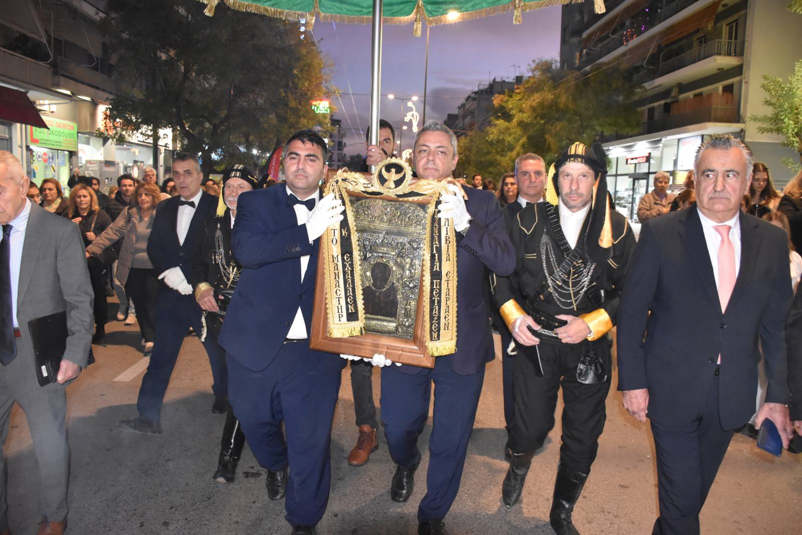 Η υποδοχή έγινε στη διασταύρωση των οδών Αχαρνών και Καυταντζόγλου, απ’ όπου εν πομπή η Εικόνα μεταφέρθηκε στον Ναό του Αγίου Ελευθερίου-οδού Αχαρνών.